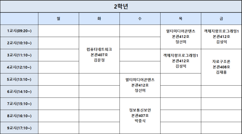 2026-1학기 2학년 시간표