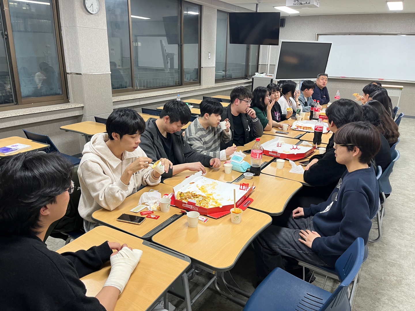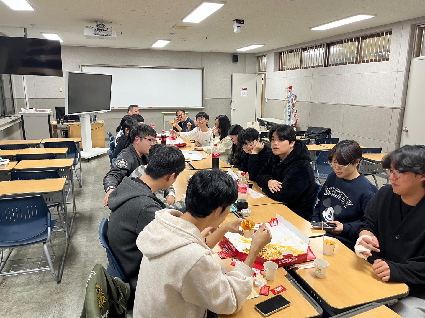 중간고사 시험기간 동안 학교에 남아서 공부하는 보건행정학과 학생들과의 간식 이벤트